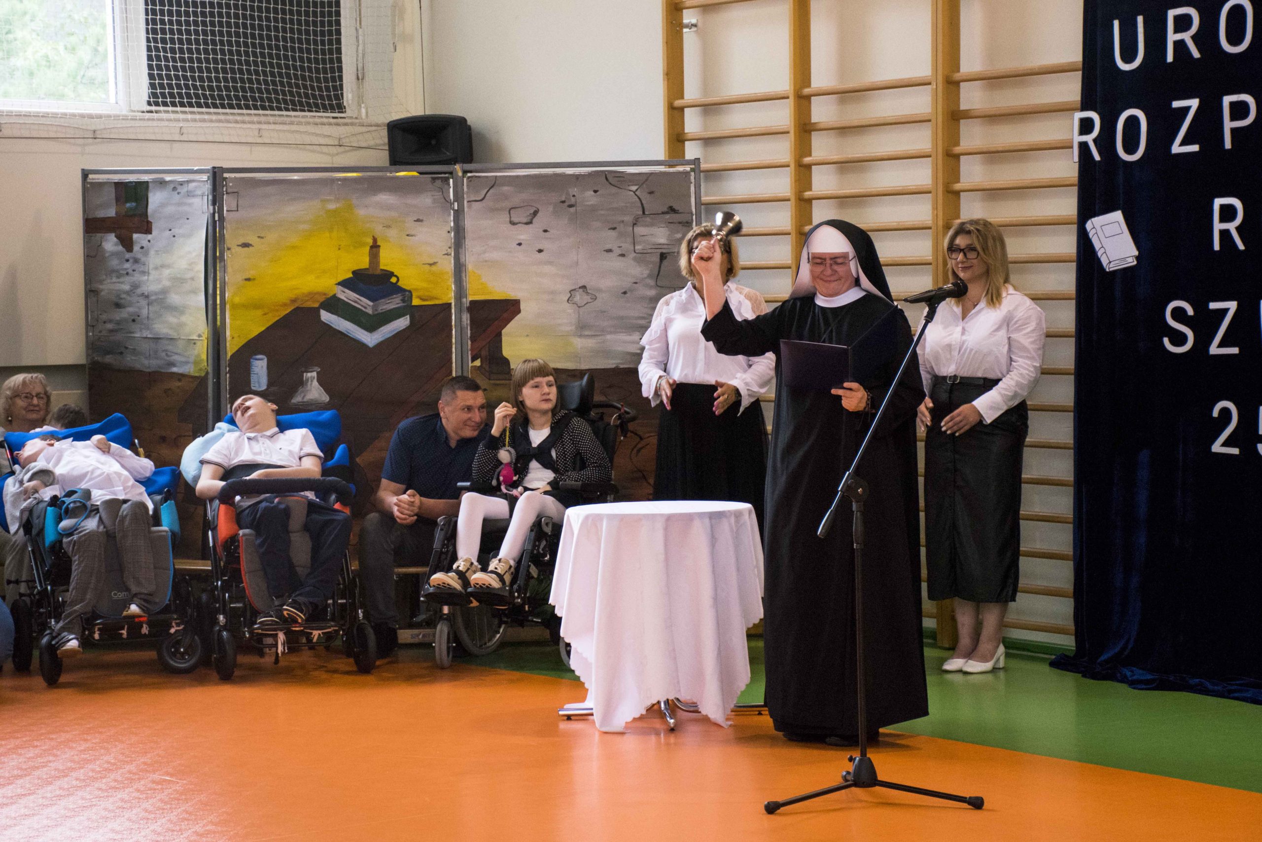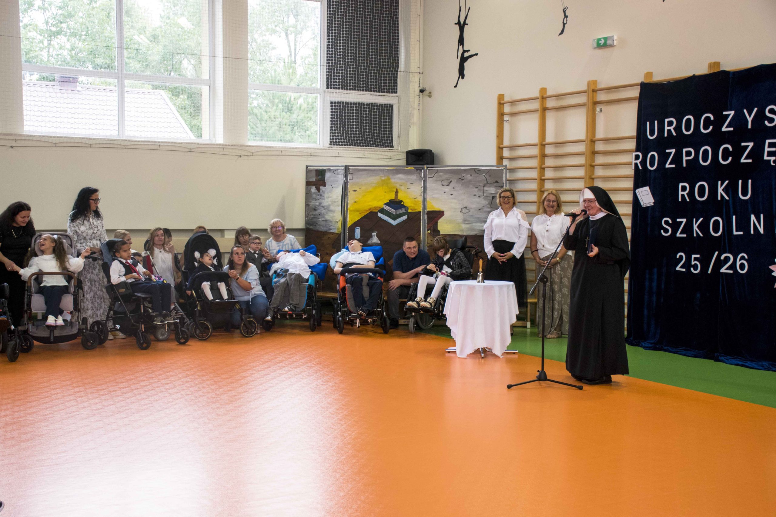 Siostra Dyrektor serdecznie przywitała wszystkich zebranych, życząc uczniom wielu sukcesów, motywacji do nauki oraz wytrwałości w dążeniu do celów.